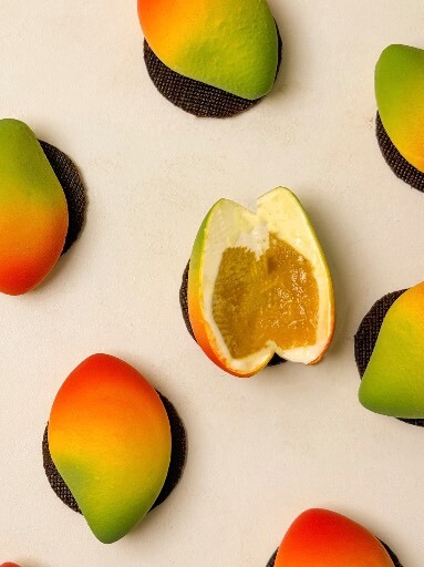 MANGO, gerçek mango görünümünde tasarlanmış; iç katmanlarında mango parçaları, mango püresi ve ipeksi mango kreması barındıran özel bir fine pastry yorumudur.